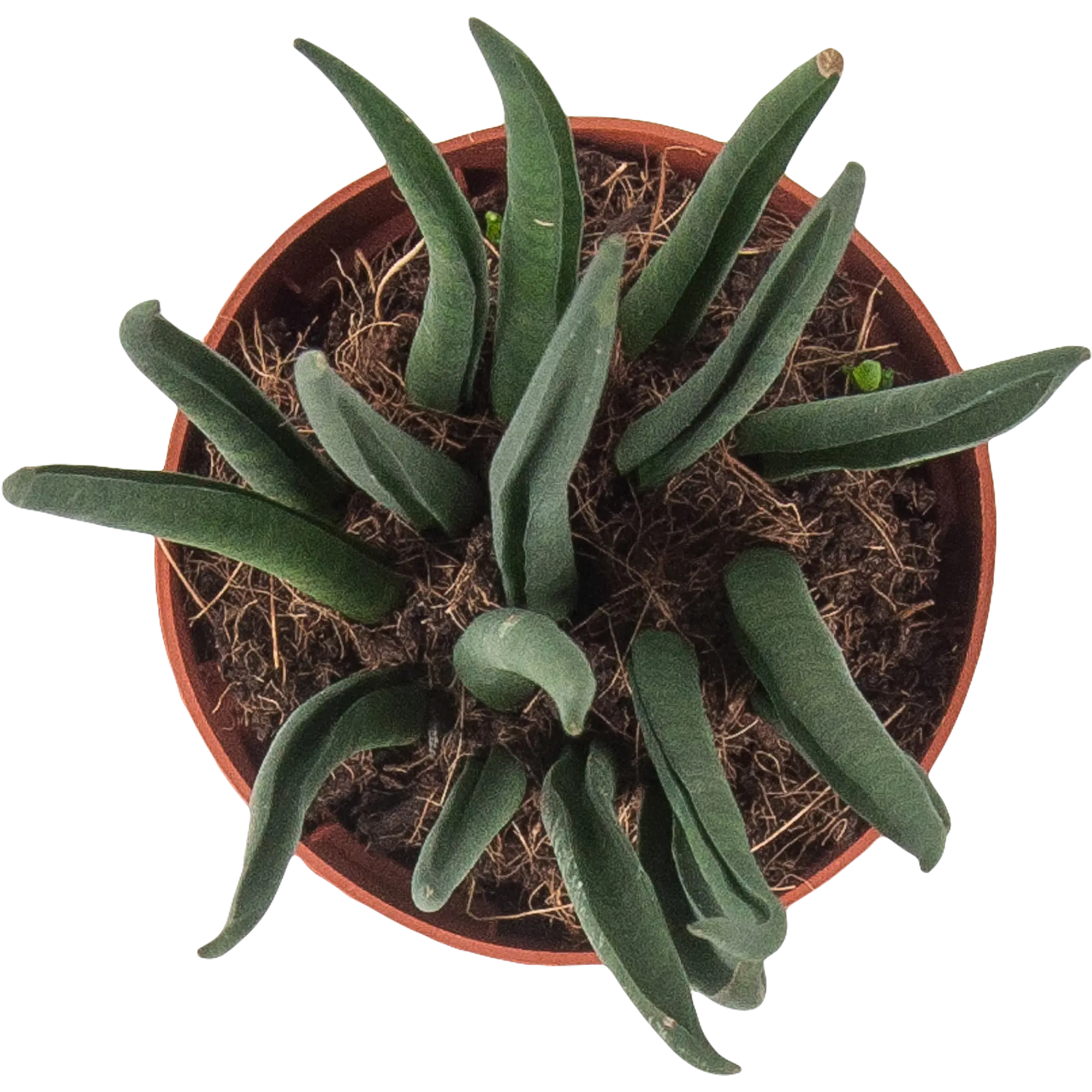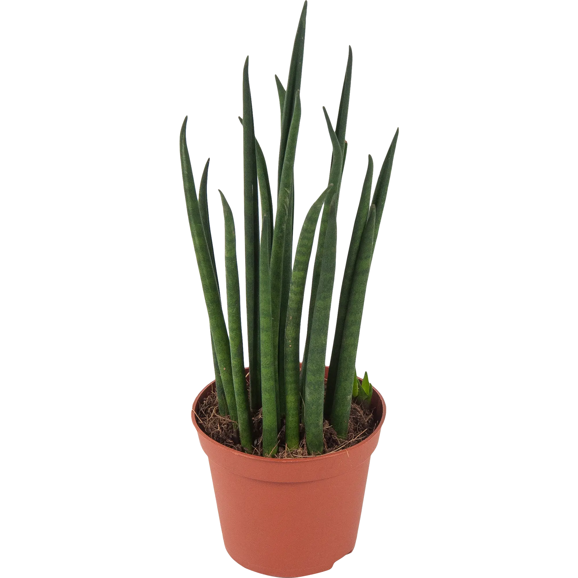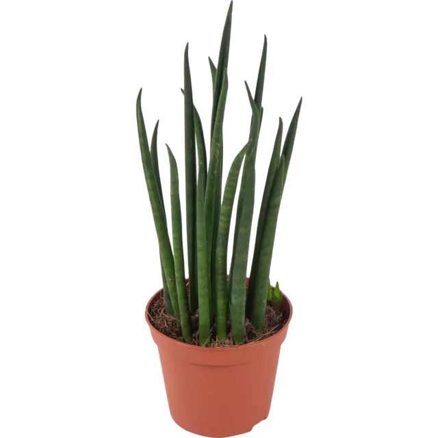 Сансевиерия микадо — бесстебельное комнатное растение с жесткими трубчатыми листьями, достигающими 30-70 см в высоту. Окраска зеленая, с темными поперечными полосами. Молодые побеги у основания и легкий наклон взрослых листьев формируют объем и оригинальную форму растения. Красиво смотрится как акцентный элемент декора, а также в композициях с другими суккулентами и комнатными растениями. Высота растения в горшке — 25 см.